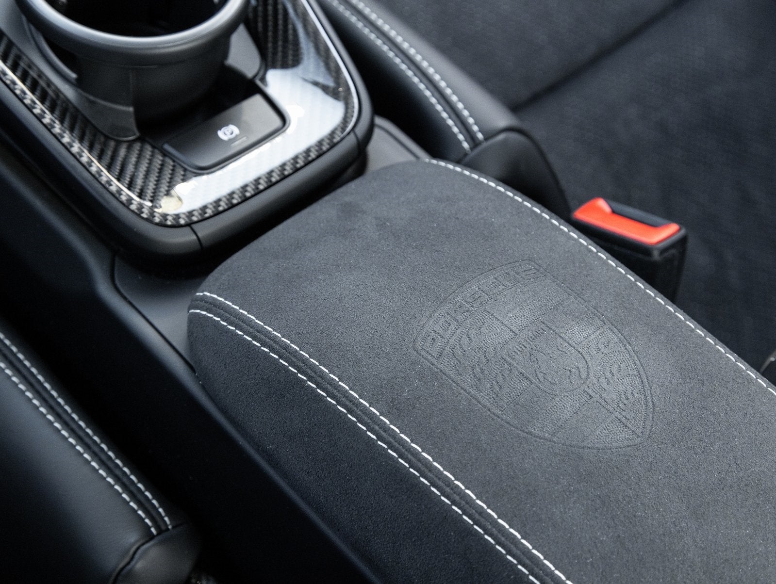 - Center Console Lid in Race-Tex w/Porsche Crest